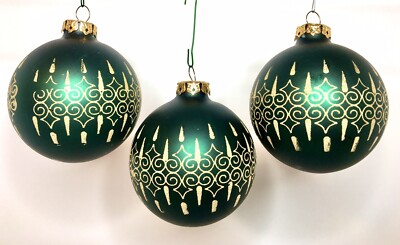 3 Stenciled Green Glass Ornaments 3 Vintage Christmas Mercury Glass Set Of 3 Ebay